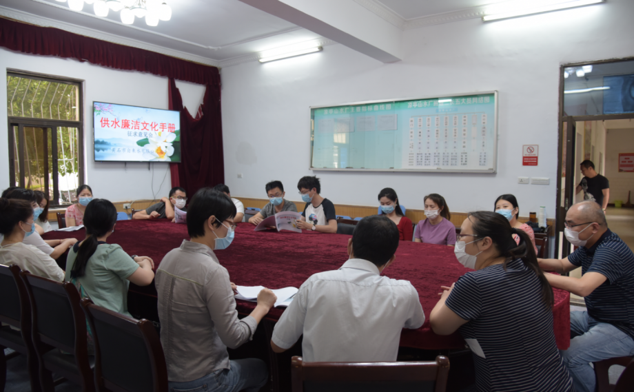 為縱深推進(jìn)國有企業(yè)“十進(jìn)十建”活動(dòng),爭創(chuàng )法紀宣教建設示范陣地,打造“廉潔供水”品牌。公司紀委組織編寫(xiě)的《供水廉潔文化手冊》經(jīng)廣泛征求員工意見(jiàn),起于認同、成于規范,已定初稿。該《手冊》理念行為識別系統確定了供水廉潔核心理念,規范了各崗位廉潔從業(yè)、優(yōu)質(zhì)服務(wù)行為,為安全生產(chǎn)、優(yōu)質(zhì)供水、服務(wù)社會(huì )奠定了政治基礎和紀律保障。圖為公司廉潔優(yōu)質(zhì)服務(wù)示范區·涼亭山水廠(chǎng)召開(kāi)《供水廉潔文化手冊》征求意見(jiàn)會(huì ),干部職工正在提出修改建議。