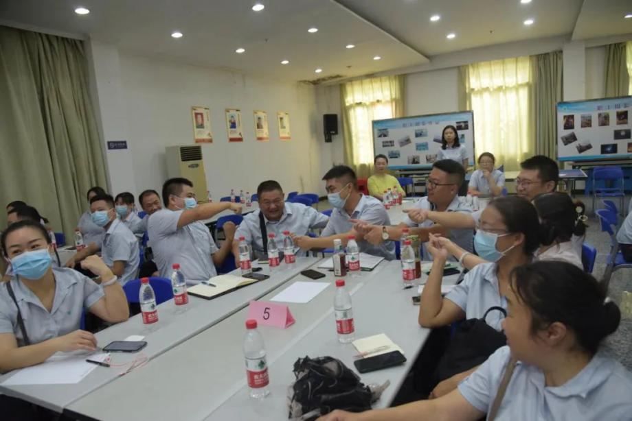 理解責任與忠誠、做到愛(ài)崗敬業(yè),既是滿(mǎn)足“孩子面包自由”的生活需求,也是實(shí)現自我價(jià)值提升的途徑,更有著(zhù)滿(mǎn)足全市市民用水需求的重要意義。來(lái)自知書(shū)習禮(黃石)文化傳播有限公司的老師諄諄引導參與人員認知工作的意義、崗位的責任。職工們分組圍坐,組建團隊,為團隊冠名,選出心儀的領(lǐng)隊,在“移花接木”的小游戲中與隊友開(kāi)始熟絡(luò ),踴躍搶答老師提出的問(wèn)題,為團隊爭奪到獎分歡呼雀躍,課堂氣氛活躍。